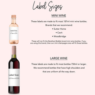 Add an amazing personal touch for a special event or occasion with custom wine and champagne bottle labels. Create your own personalized wine labels today. Your wine or champagne will be transformed into an elegant product with beautifully printed personalized labels. Use the labels for bridesmaid proposals, wedding favors, hostess gifts and more. Our bottle labels are printed on durable, weatherproof polyester label paper. Feel free to put the bottle on ice or chill it without the label coming off. The labels are peel and stick which makes label application a breeze. Just simply peel the label off the backing and stick it to the bottle. Customize our bottle labels with our online customizer. You can change the text of the labels for your event. Choose from hundreds of different fonts and change the font colors to create the perfect label.